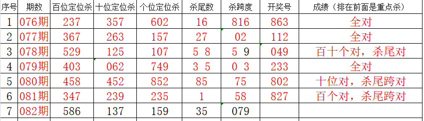 我们选取上期开奖号码827、在一起彩APP上截取前100期的数据,分别记录当开出8、十2、个7、后下期开出什么号记录下来,然后一一分析。
