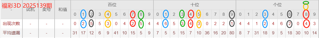 福彩3D 2025139期分析分享(连中3期上期中大底两组)