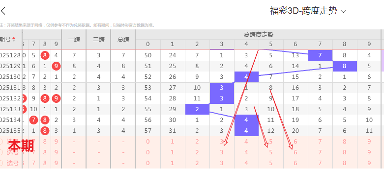 二、本期跨度值 012 路分析 观察近期开奖数据的跨度值,0 路跨度值出现了 4 次,1 路跨度值出现了 5 次,2 路跨度值出现了 6 次。从最近 5 期数据来看,0 路跨度值出现了 1 次,1 路跨度值出现了 2 次,2 路跨度值出现了 2 次。 综合考虑历史数据与近期走势,本期推荐 3 5 6。