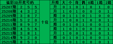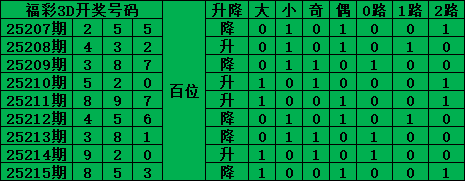 福彩3D是从0-9每期开出3个号码,截至2025214期三个位置最大遗漏的是31期个位的9号。