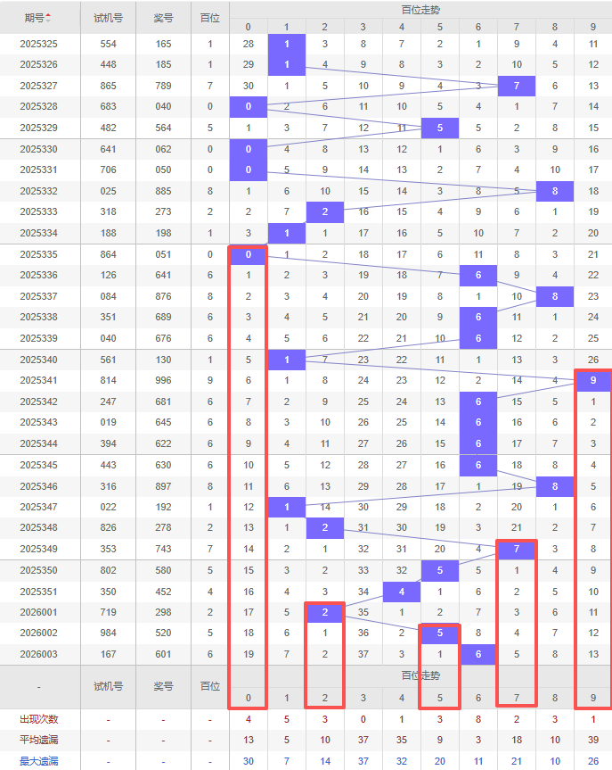 2026004期五码定位(百位、十位、个位):