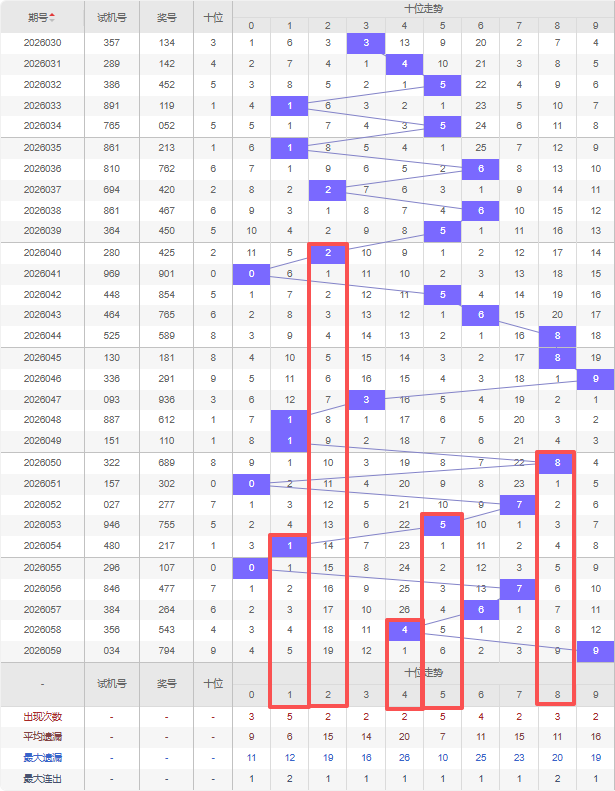 上期十位:9,近10期十位出号 :8 0 7 5 1 0 7 6 4 9,最近10期大小变化分别:大小大大小小大大小大,奇偶变化分别:偶偶奇奇奇偶奇偶偶奇,质合变化分别:合合质质质合质合合合,根据近10期的规律本期综上所述十位出号推荐5个号码:1 2 4 5 8。