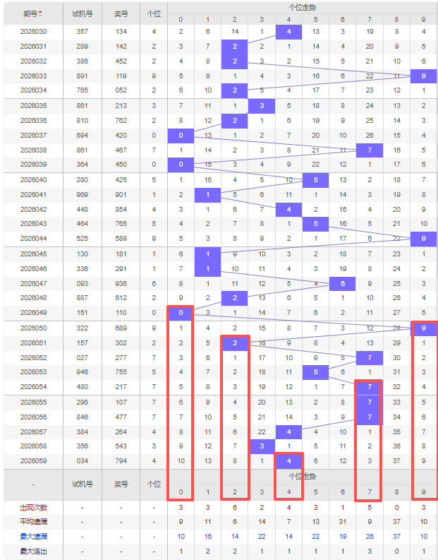 上期个位:4,近10期个位出号:9 2 7 5 7 7 7 4 3 4。最近10期大小变化分别:大小大大大大大小小小,奇偶变化分别:奇偶奇奇奇奇奇偶奇偶,质合变化分别:合质质质质质质合质合,根据近10期规律本期综上所述个位出号推荐5个号码:0 2 4 7 9。