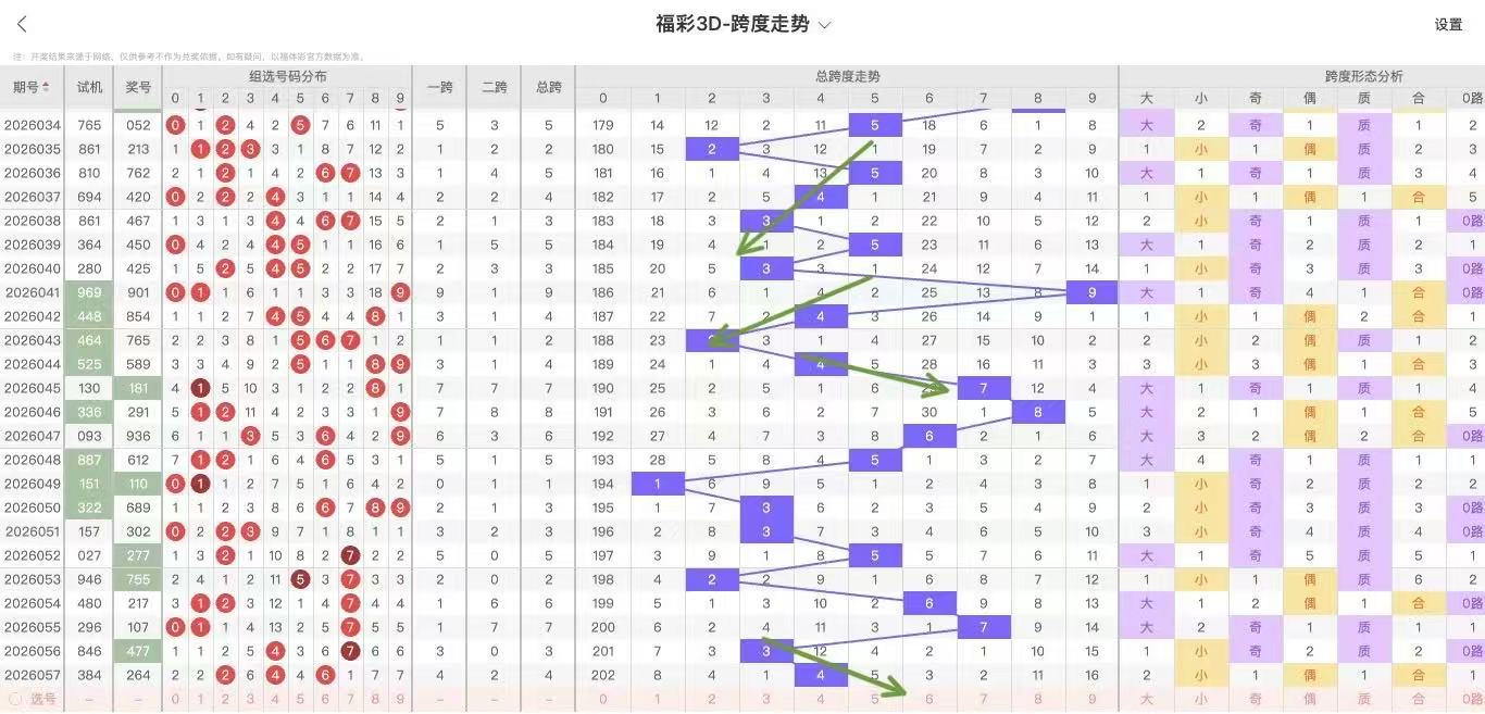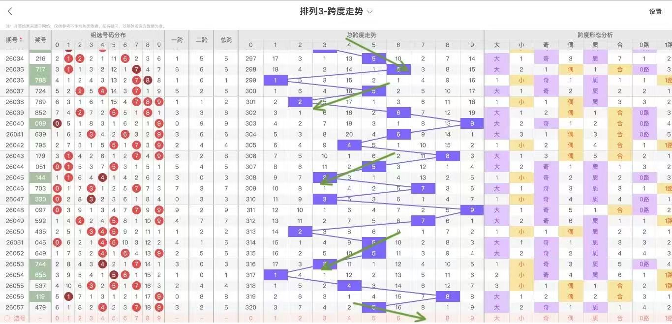 根据走势对跨度观察统计得到以下分析结果: