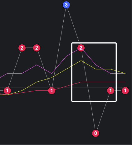 可以看到一些规律,在粉框中,如果一致,那么接下来这些跨度也会出。