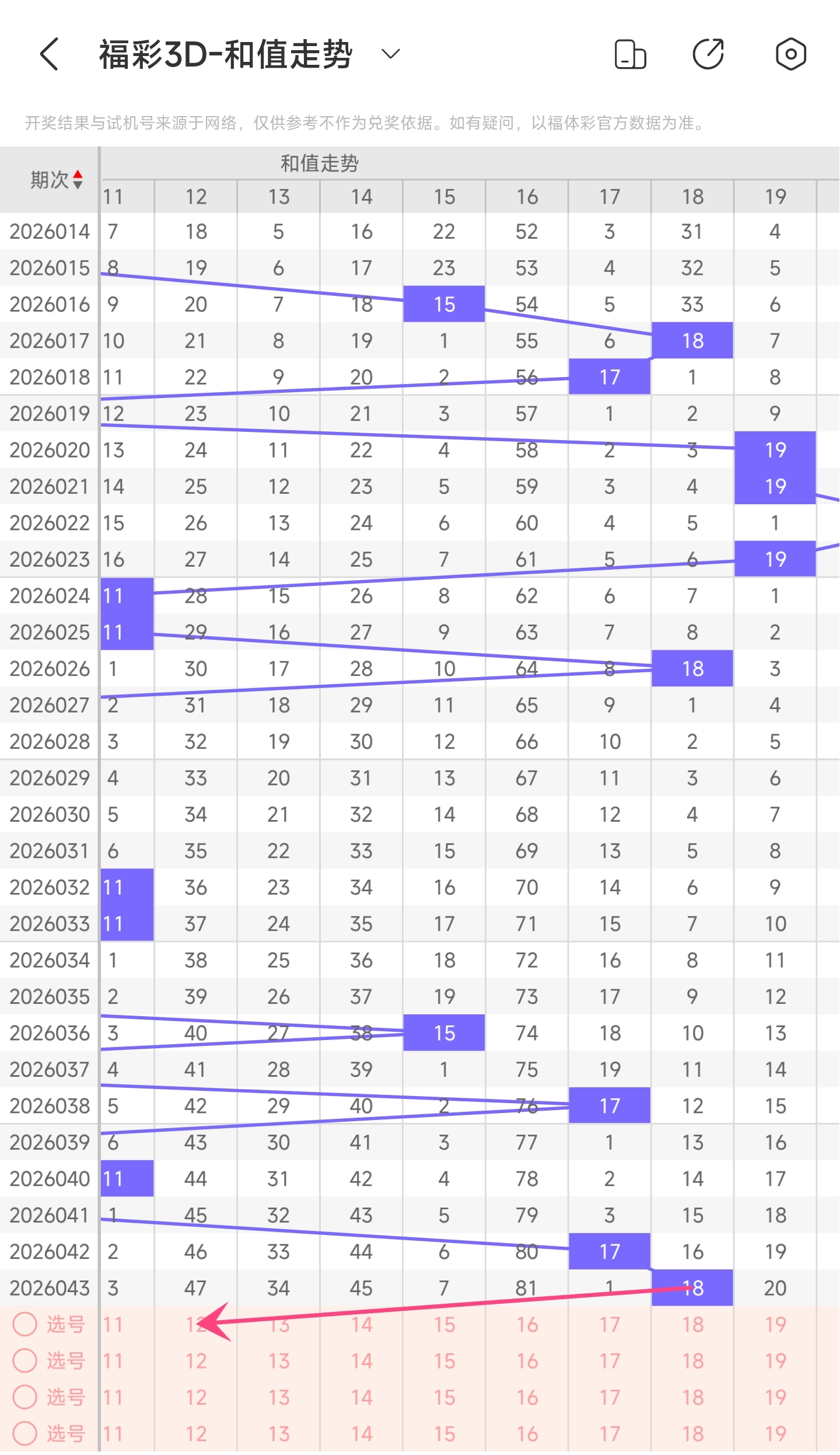 一、通过和值走势分析: