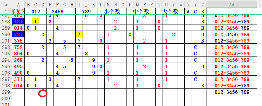 如上图2,大中小分析来看,小中数尾0123456尾,可以考虑定3456尾。
