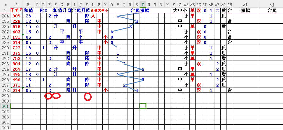 如上图3,根据和值升平降来看,和值降的概率很大,也就是大于05的和值,关注05以上的和值。
