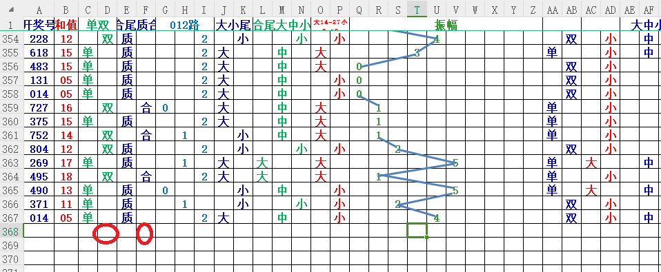 如上图2,012路分析12路尾走比较好,关注147258尾;
