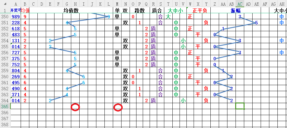 如上图1,大中小分析,均值中大数比较好,也就是 3 4 5 6 均值最好,重点:356