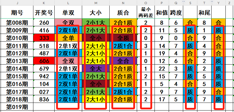 3,目前开奖号个位号码球11天当中,质数(12357)开出了4次,合数(04689)开出了7次,本期重点关注开奖号个位号码球质数的回补!