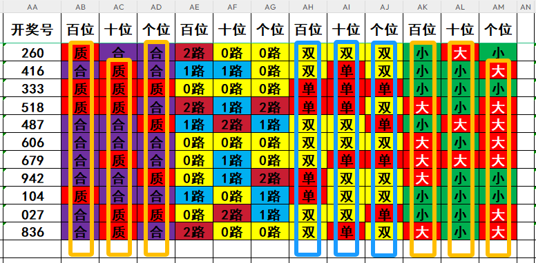 1,目前开奖号百位号码球11天当中,质数(12357)开出了4次,合数(04689)开出了7次,本期重点关注开奖号百位号码球质数的回补!
