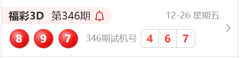 福彩3D第346期开奖结果为:897