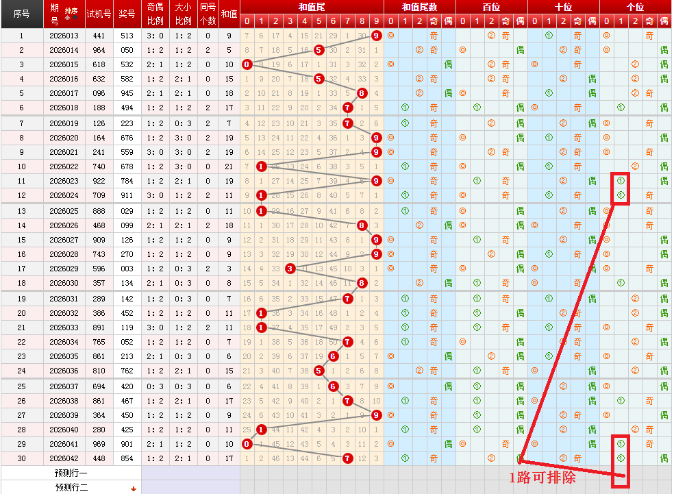 观察各位置奇偶开出趋势,本期选择奇数1-3个。1个最佳。