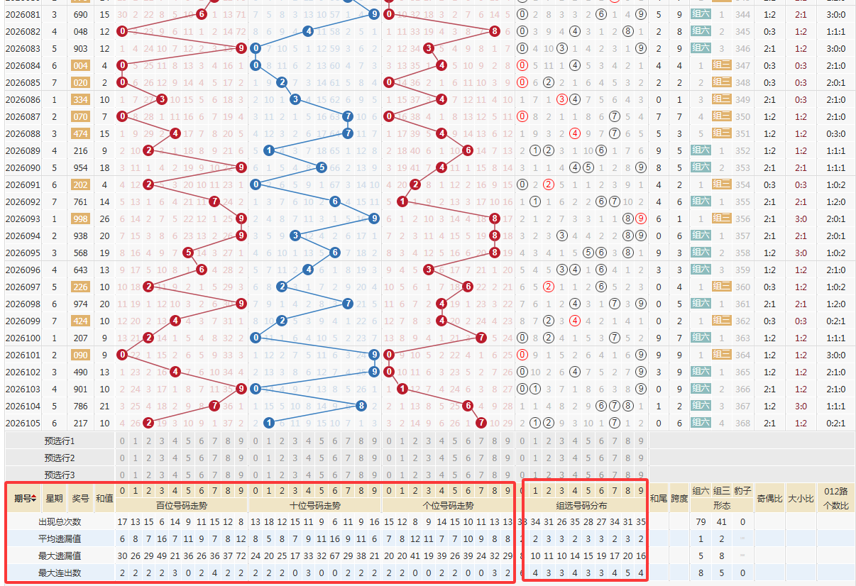 第三步:取近百期数据杀跨度/杀和值尾判断