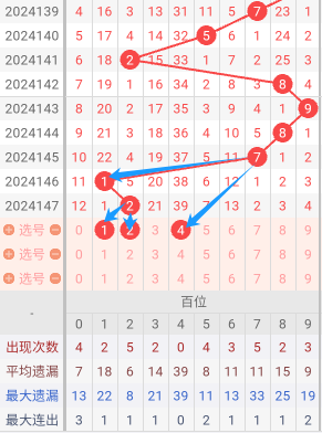 现在我给大家分析下,本期百位可能开出的号吗,上期开出了2,137期开出了9号码球,138期开出了9号码球,139期开出了7号码球,140期开出了5号码球,141期开出了2号码球,142期开出了8号码球,143期开出了9号码球,144期开出了8号码球,145期开出了7号码球,146期开出了1号码球,147期开出了2号码球,根据这六期的走势和历史50期内的走势对比,我们可以先考虑本期可能会出小号,下面我给大家推存百位可能开出的几个号,个人比较看好124,百位我们就先暂定这两个号。本期关注0-7之间的号码,同时关注遗漏期数较小的号码。按最近遗漏走势,开了遗漏期数较小之后开遗漏期数大的可能性比较大。
