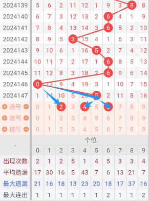 现在我给大家分析下,本期个位可能开出的号,上期开出了5,137期开出了2号码球,138期开出了5号码球,139期开出了8号码球,140期开出了6号码球,141期开出了6号码球,142期开出了3号码球,143期开出了5号码球,144期开出了6号码球,145期开出了6号码球,146期开出了0号码球,147期开出了5号码球,根据这几期的走势和历史50期内的走势对比,我们可以先考虑本期可能会出小号,下面我给大家推存个位可能开出的几个号,个人比较看好246,个位我们就先暂定这两个号。本期重点关注1-7之间的号码,同时关注遗漏期数较大的号码。按最近遗漏走势,开了遗漏期数较大之后开遗漏期数小的可能性比较大。