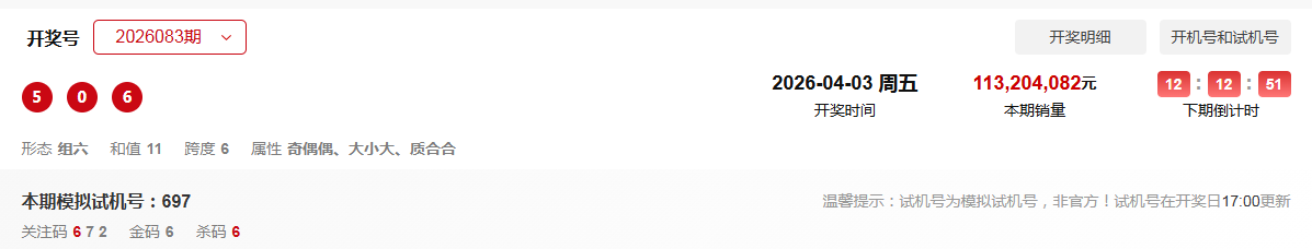 福彩3D第084期:上期通杀一码,定位杀一码连续五天命中