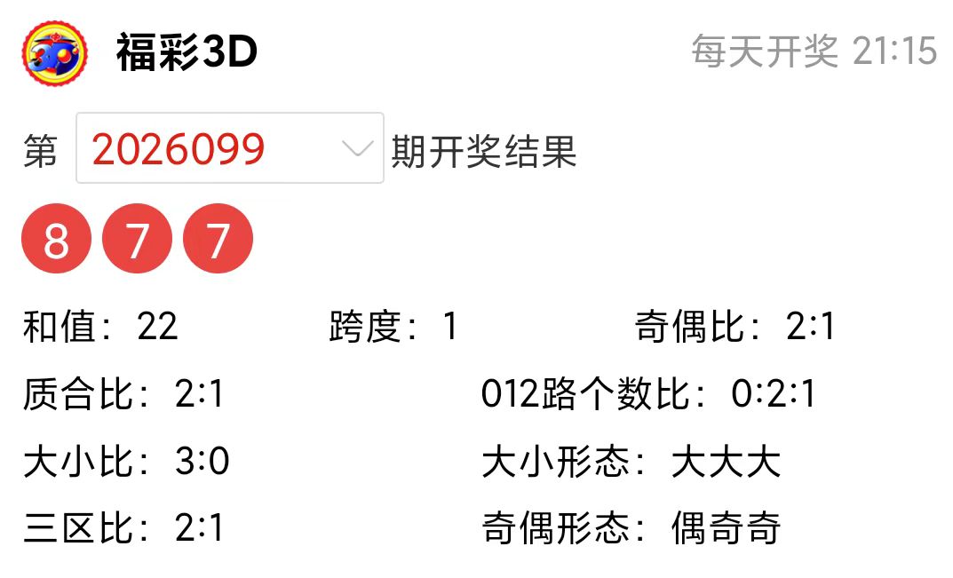 福彩3D第2026100期分析,本期看好偶号,金胆2号!
