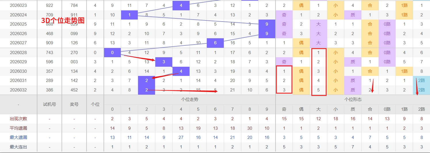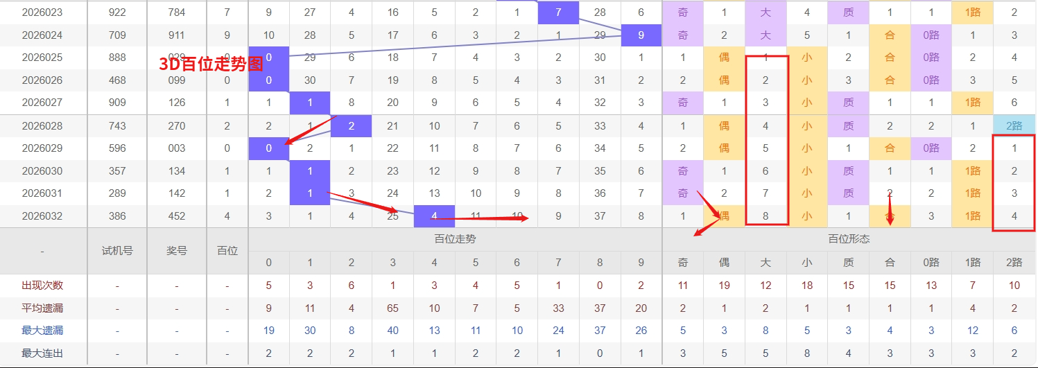福彩3D百位分析:第2026032期百位开出号码4属于小偶数,从上面百位走势图上可以看出近100期大小比约为49:51奇偶比约为53:47。近期数据还是比较极端的符合文章开头介绍的求均衡规律非等量现象。但这种均衡不会持续最终会被偏态运行打破,然后循环往复。但短期内大小相差3点,大数过热小数有回补需求本期个人认为走小数的概率更高。上期百位落号“4”号球,在百位号码开出1路号码4后向大数方向走出3个振幅。那么通过分析上期百位落位号码分析,号码走出3个振幅,号码走为小偶数,开出1路号码4。通过对百位落号趋势来分析,百位号码落位前端,通过对近10期的走势来看百位号码大小交替频繁走3期大数又走2小数,近期3D百位走势来看,数字3和8确实呈现出明显的冷态,遗漏周期逐渐拉长,从历史数据与概率均衡的角度分析,冷号回补是必然趋势,尤其当两者同时进入深度遗漏区间时,后续需密切关注其解冻信号。而数字5则持续活跃,形成强势热号态势,这种热态往往具有惯性,短期内需重点防范其再度开出。综合来看,投注时需兼顾冷热平衡:一方面关注3、8的回补机会,可考虑其伴随温号或热号组合出现;另一方面对热号5不可忽视,需防其持续走强。我们在百位关注的重点在23578这5个号码球上,百位号码近期奇偶切换频繁,4号球码属于1路号码偶数,现偶数开出过多有向奇数的趋势。所以福彩3D第2026033期百位看23578。本文由一起彩钱是生命动力所著,请勿转载