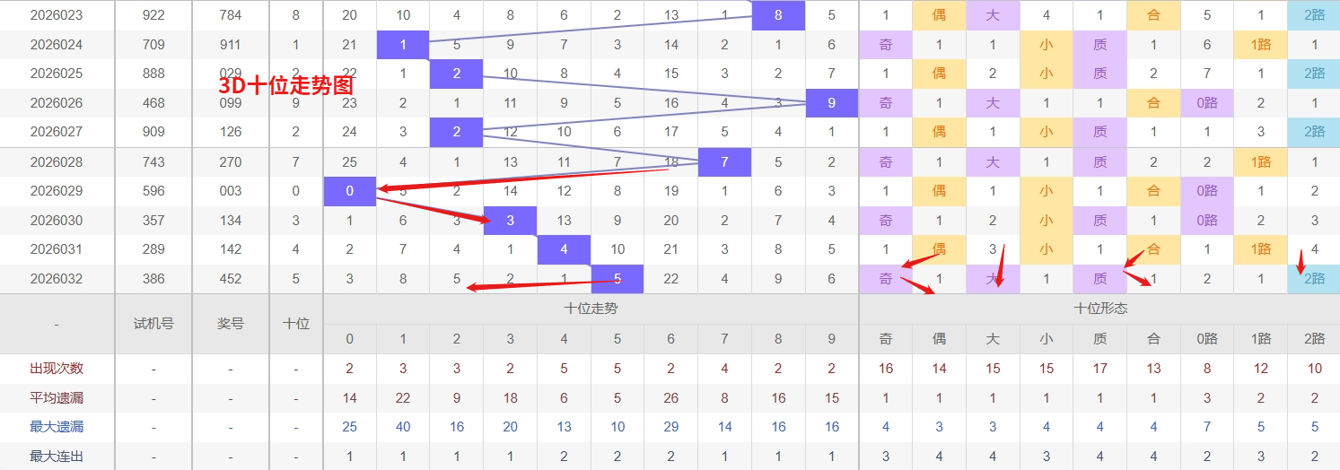 福彩3D十位分析:第2026032期十位开出号码5属大奇数号码中端。以历史100期数据为例十位奇偶比约为53比47,大小比约为54比46近期大小相差1点,根据求均衡的规律开出大数的概率比小数高一点。上期我们分析偶数经过连续回补后有走奇数的可能,开出奖号5大奇数符合我们的预期。3D十位的近期走势观察,数字6已进入明显的冷态阶段,其遗漏值逐步攀升,根据冷热转换的规律,任何冷号都有均值回归的需求,因此6在十位的回补动能正在积累,可重点留意其解冻信号的出现。而数字7则呈现持续热态,多次开出形成强势轨迹,热号往往具备一定的惯性特征,短期内需警惕其再次发力。在实际分析中,需注意冷热号之间的动态平衡:一方面可关注冷号6的反弹机会,尤其注意其是否伴随邻号或特定形态组合出现;另一方面对热号7的防守不可松懈,防止热态延续形成强势周期。所以福彩3D第2026033期十位推荐12367。本文由一起彩钱是生命动力所著,请勿转载