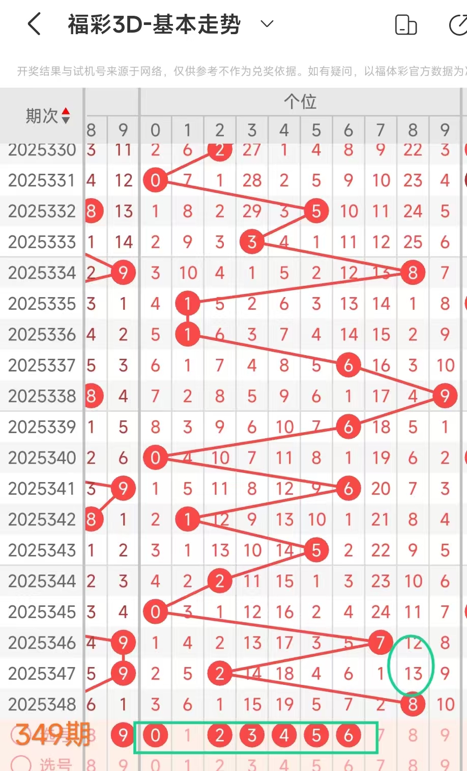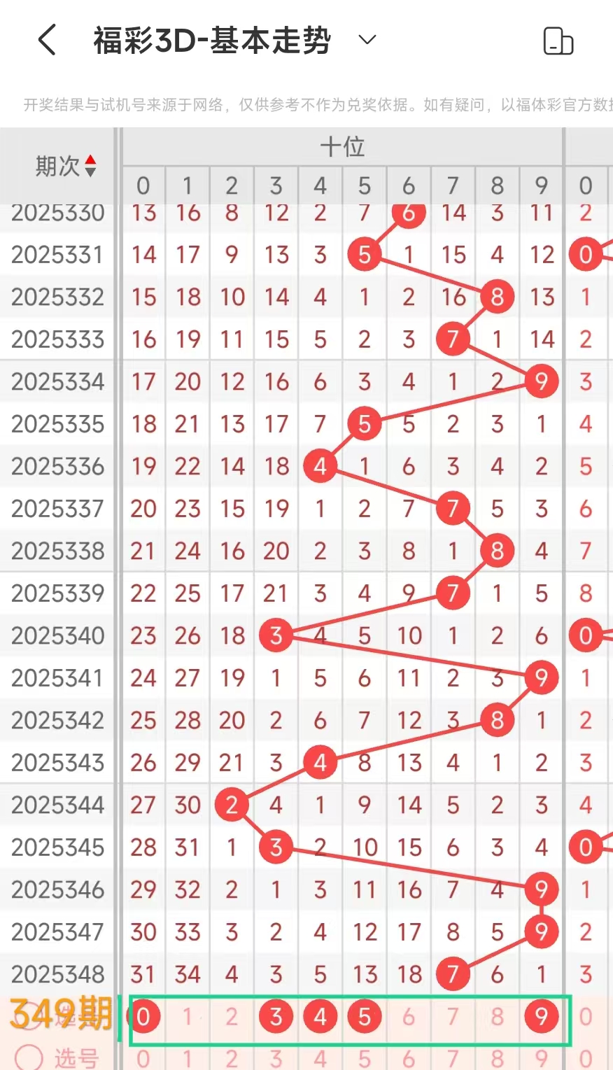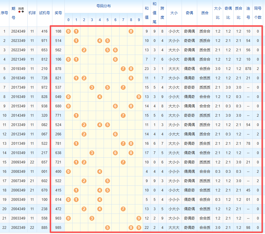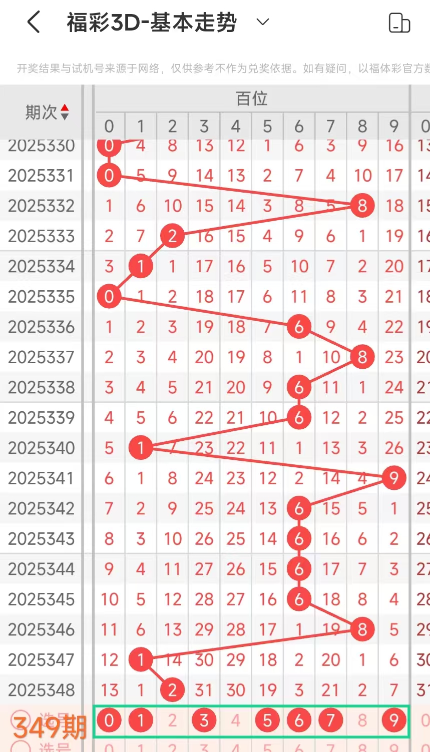 4、通过上述我们得到这期百十个位分析号码:百位15,十位3、个位345689