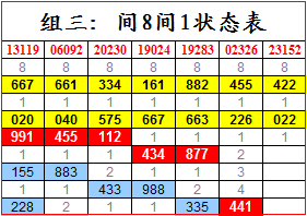 只有一次是间隔4期开出。综合判断,本次组三极可能两期内开出,判断本期连开可能性极大。