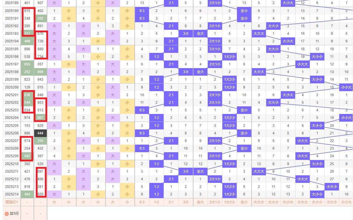 大小走势分析 - 大小比:上期开奖号码呈现大小小形态,即第一位大、第二位小、第三位小。综合近期大小号的波动趋势,建议本期重点关注大小比为2:1的组合。防全大.