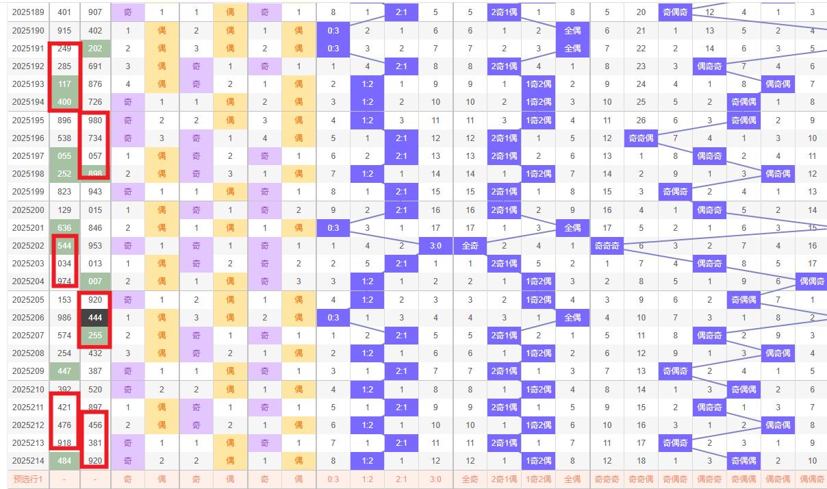 奇偶比例分析 - 奇偶比:上期号码920为奇偶偶形态,奇偶比例为1:2。结合历史数据与近期走势特征,本期可继续倾向于奇偶比为2:1的组合,即预测二位奇数搭配一位偶数。