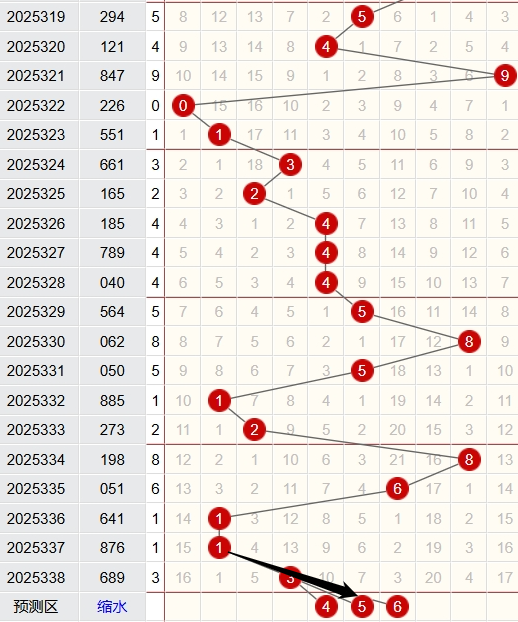 上期和尾为3,近5期和尾开出情况:第25334期开出8,属于偶数,2路号码,木属性;第25335期开出6,属于偶数,0路号码,水属性;第25336期开出1,属于奇数,1路号码,水属性;第25337期开出1,属于奇数,1路号码,水属性;第25338期开出3,属于奇数,0路号码,木属性;