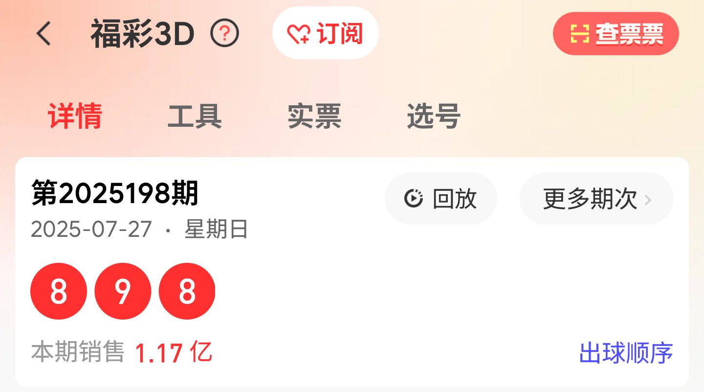 福彩2025198期开出奖号为898,和值25,全大,1奇2偶的组三形态号码。在遗漏了六天后终于迎来组三号码的开出,不难发现近期的开奖号十分均衡,全顺组合,对子与组六交替出现。这让我们的分析有了更好的参考范围,那接下来让我们一起走进福彩2025199期的选号分析: