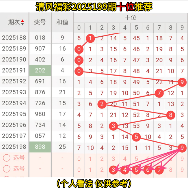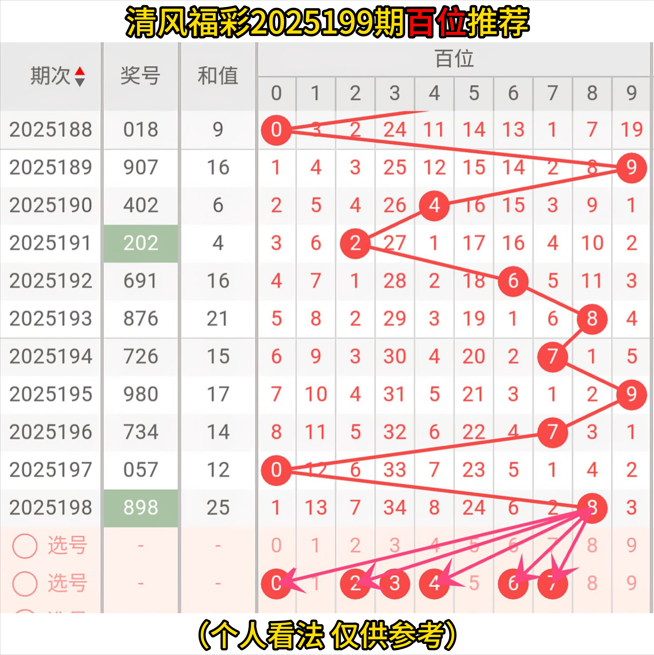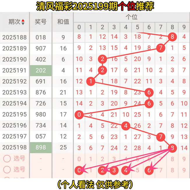 再让我们来看一下福彩2025199期的杀号与胆码分析: