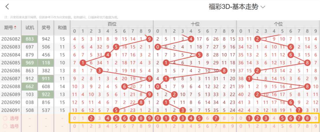 带着粉丝发大财福彩3D第26092期选号条件分析
