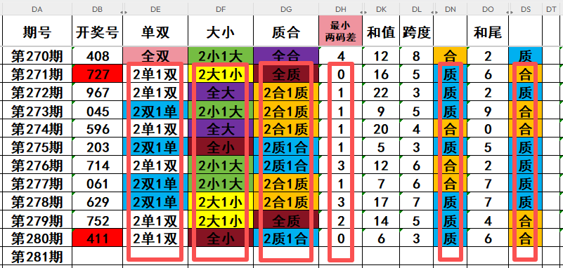 3,最近10天当中,两质一合开出3次,两合一质开出5次,全质数开出2次,全合数开出0次。当前开奖号全奇号码遗漏10期,近期需重点关注开奖号全单号码的回补!