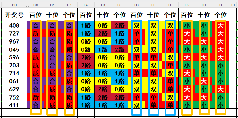 2,目前开奖号十位号码球11天当中,质数(12357)开出了5次,合数(04689)开出了6次,本期重点关注开奖号十位号码球质数的回补!