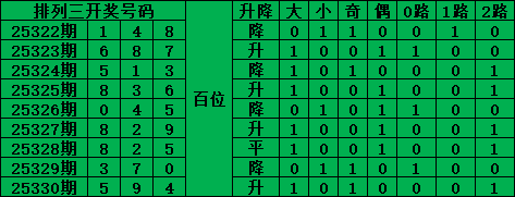 排列三是从0-9每期开出3个号码,截至2025330期三个位置最大遗漏的是32期个位的1号。
