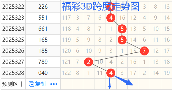 依次是55724跨度,按照路数转换关系来看,那么跨度我们暂定258147跨 ,本期个人比较看好6 4 跨。
