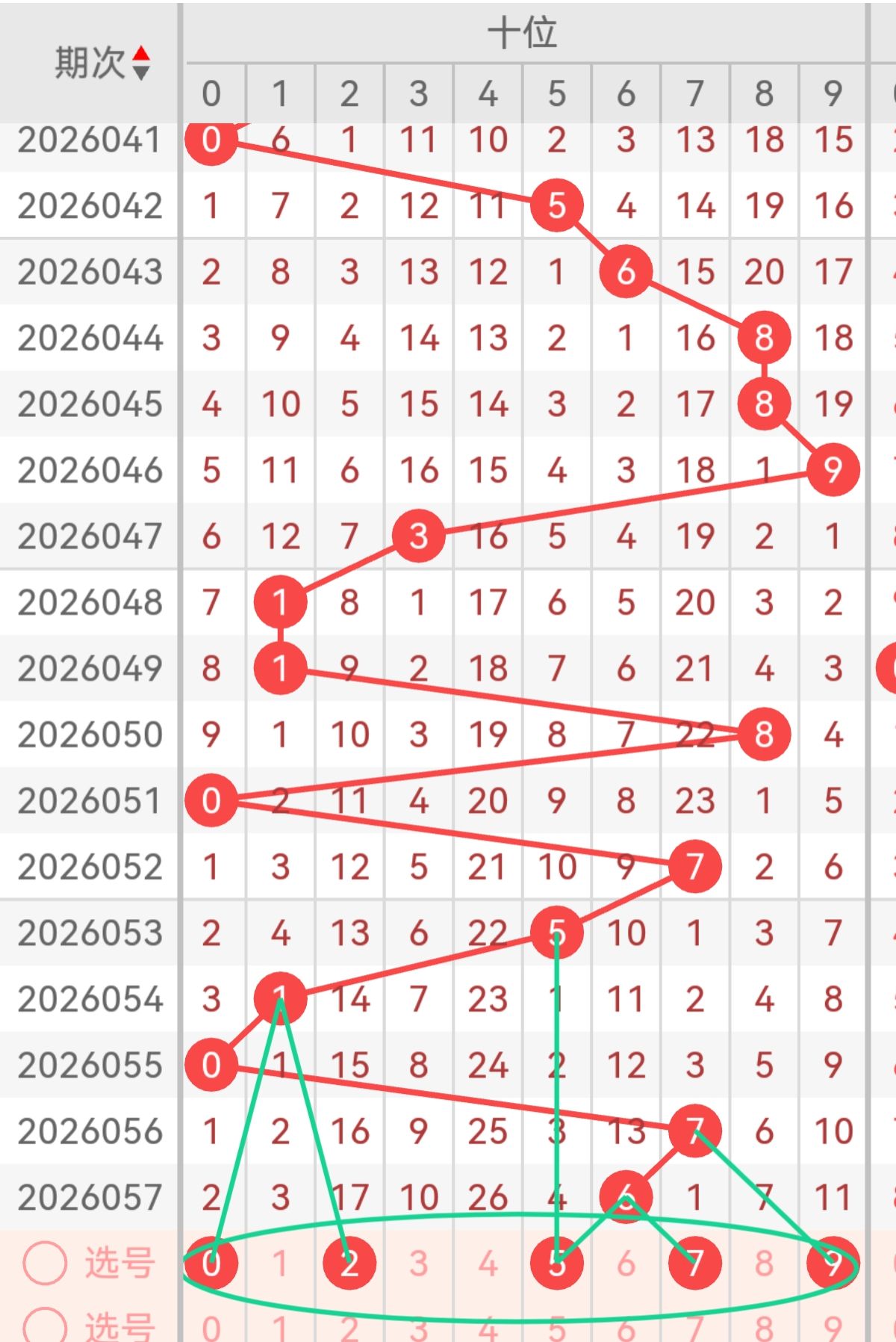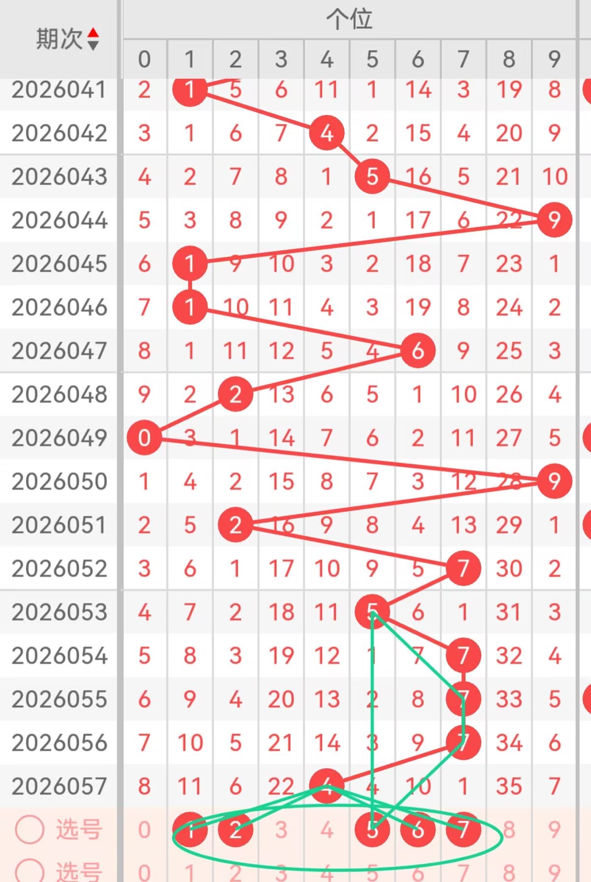 上期个位开出4,重点3号:5、6、3,5为中号奇数,质数属性,契合质数趋势,近期个位5号出现频率稳定;6为大号偶数,衔接上期偶数走势,冷热适中;3为小号奇数,质数核心,平衡大小奇偶比例。备用2号:1、7,1为小号质数,龙头号码,稳定性强;7为大号质数,补充大号遗漏,适配个位大号回补需求。从路数走势看,个位上期为1路号,本期0路、2路号需重点关注,5、3为0路号,6、1为1路号,7为2路号。