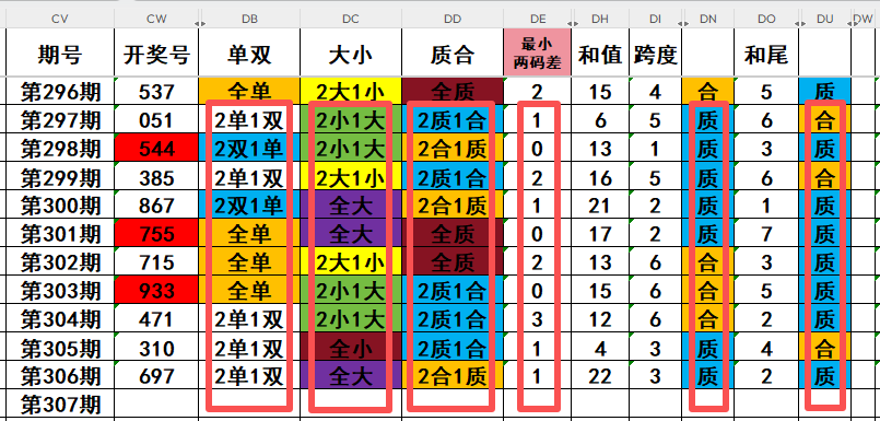 3,最近10天当中,两质一合开出5次,两合一质开出3次,全质数开出2次,全合数开出0次。当前开奖号全合号码遗漏22期,近期需重点关注开奖号全合号码的回补!