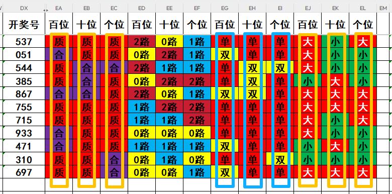 3,目前开奖号个位号码球11天当中,质数(12357)开出了8次,合数(04689)开出了3次,本期重点关注开奖号个位号码球合数的回补!