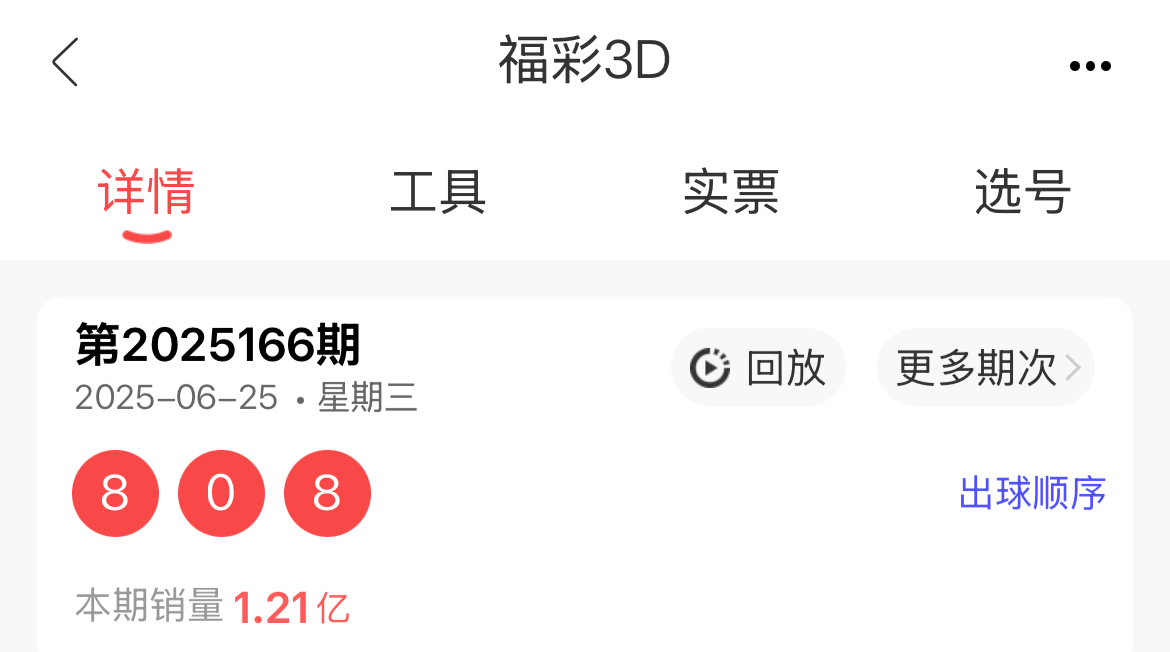 166期开奖号为808,形态组三,质合比0:3,和值16,跨度8,012路比为1:0:2,大小比2:1,奇偶比0:3