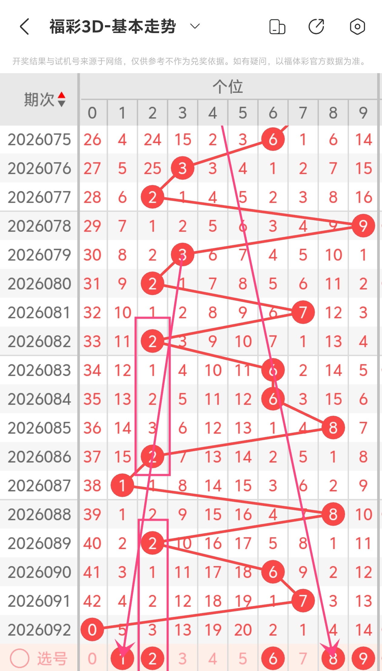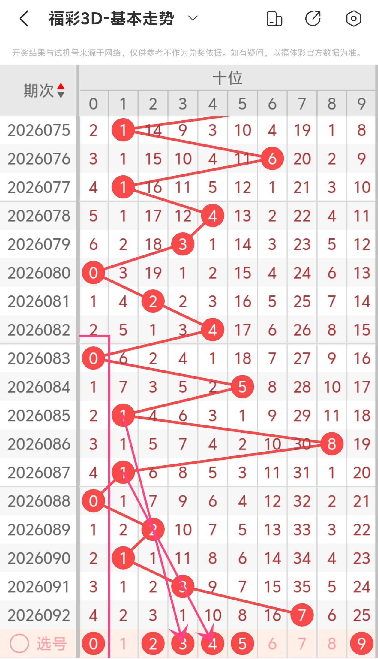 分析:上期个位开出0,为小号。近期个位大号活跃度提升。号码6在多家分析中被重点看好,且符合近期“大号+偶数”组合的热度,是本期个位的重点关注对象。号码1则作为防守小号的选择。
