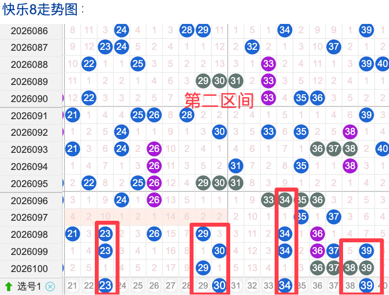 上期二区开出5个奖号(29.36.37.38.39)上期回顾二区开出5个奖号二区间在上期落位同比前期的话呈现了一个递减落位趋势,先来看本期号码23整体活跃度较温热,在近 30 期里有一定的间歇性出现,不是每期都开,近期整体走势还不是很稳定。号码30近期热度较热,间隔性整体比较热,说明其在当前阶段活跃度较热注意防守。号码34近期活跃度较温热有一定的间歇性近期整体走势相对还不是很稳定有特别明显的冷热趋势变化,号码39近30期内活跃度较热,没有明显的连续出现形态走势,整体表现比较热。
