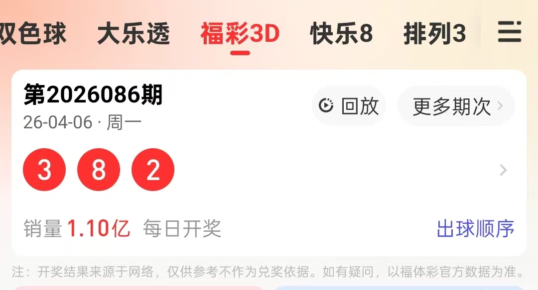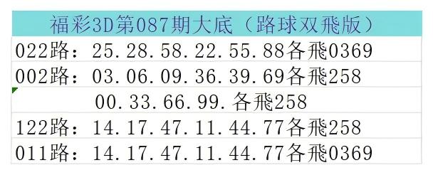 福彩3D第2026087期大底参考:(022路.002路.122路.011路)