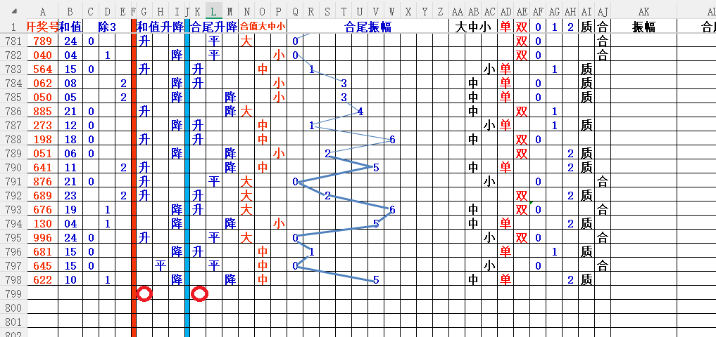 如上图2,012路分析01路尾走比较好,关注0369147尾;