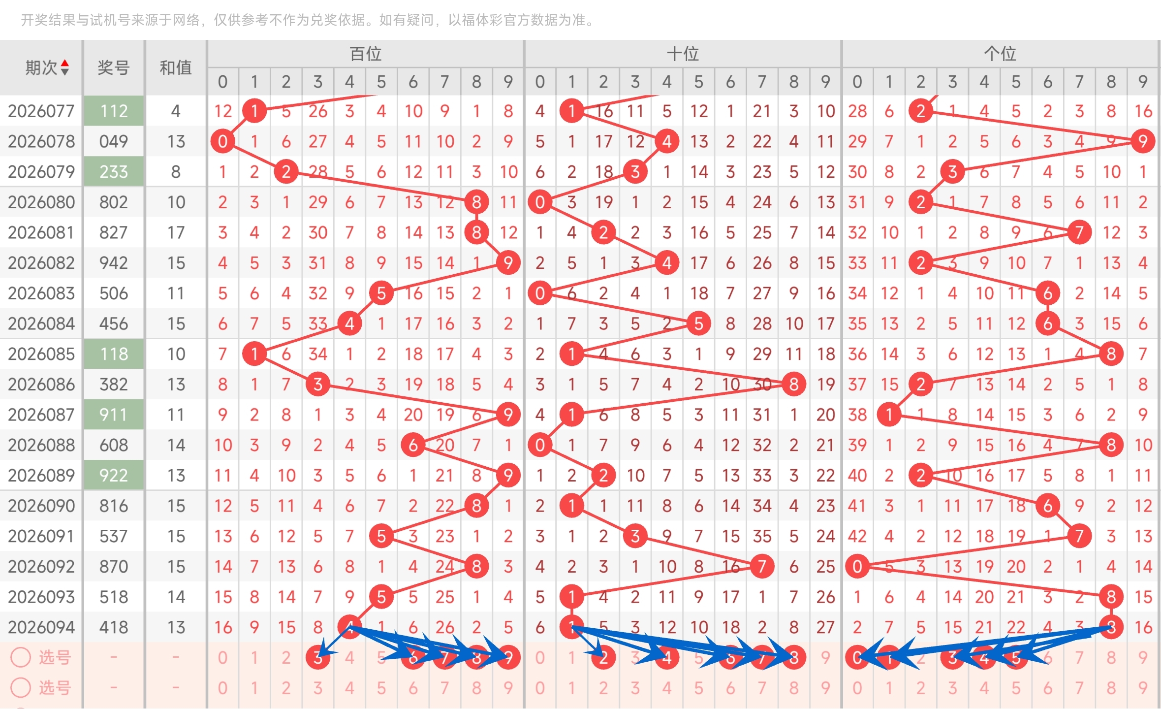 第2026075期福彩3D分析文章,3码定位命中816。