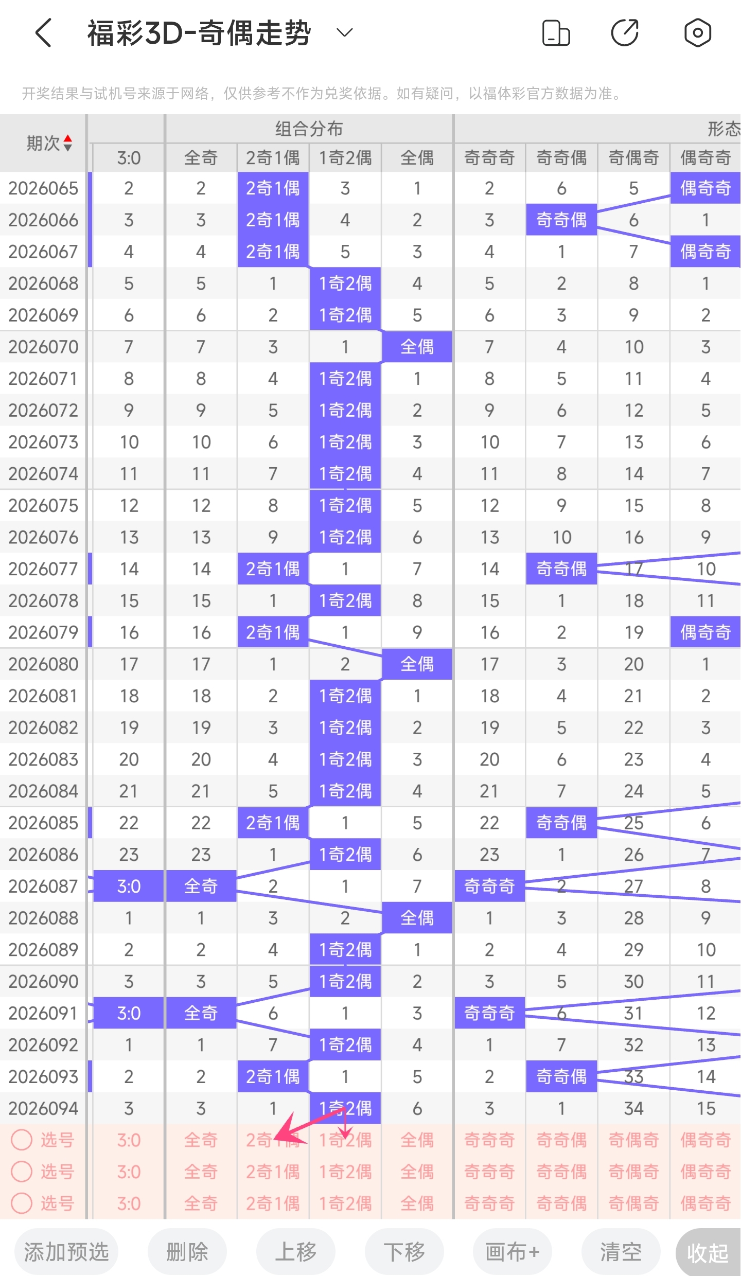 三、通过奇偶走势分析: