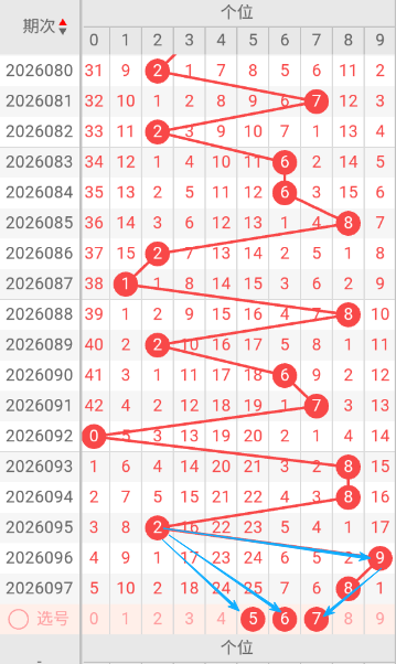 现在我给大家分析下,本期个位可能开出的号码,上期开出了8,085期开出了8号码球,086期开出了2号码球,087期开出了1号码球,088期开出了8号码球,089期开出了2号码球,090期开出了6号码球,091期开出了7号码球,092期开出了0号码球,093期开出了8号码球,094期开出了8号码球,095期开出了2号码球,096期开出了9号码球,07期开出了8号码球,跟据这几期的走势和历史30期内的走势对比,可以先考虑本期可能会出大号,下面我给大家推存个位可能开出的几个号,个人比较看好567,个位我们就先暂定这两个号。本期重点关2-8之间的号码,同时关注遗漏期数较大的号码。按最近遗漏走势,开了遗漏期数较大之后开遗漏期数小的可能性比较大。