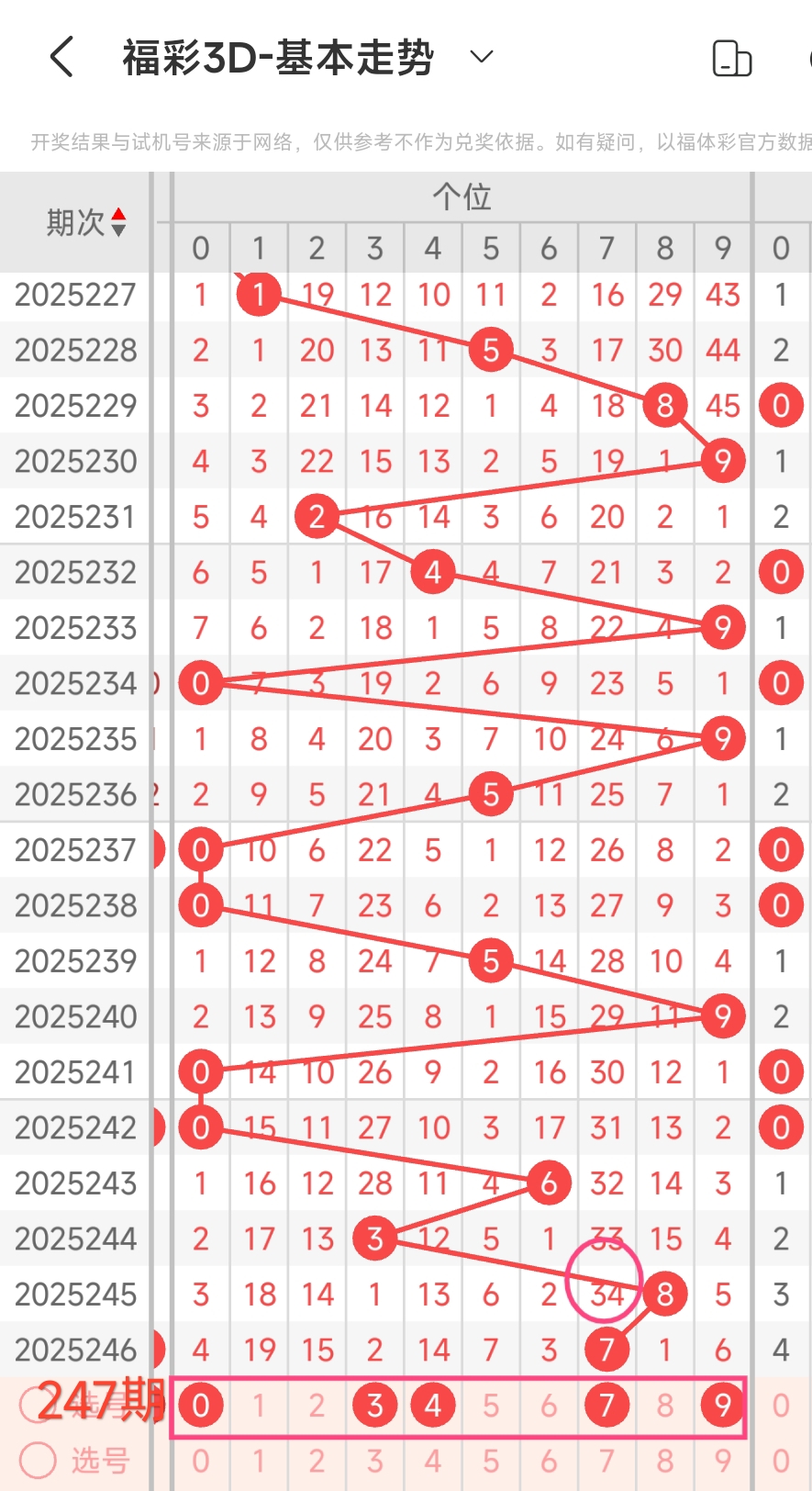 这23期跨度34567趋势好,这期可以考虑34567跨度。
