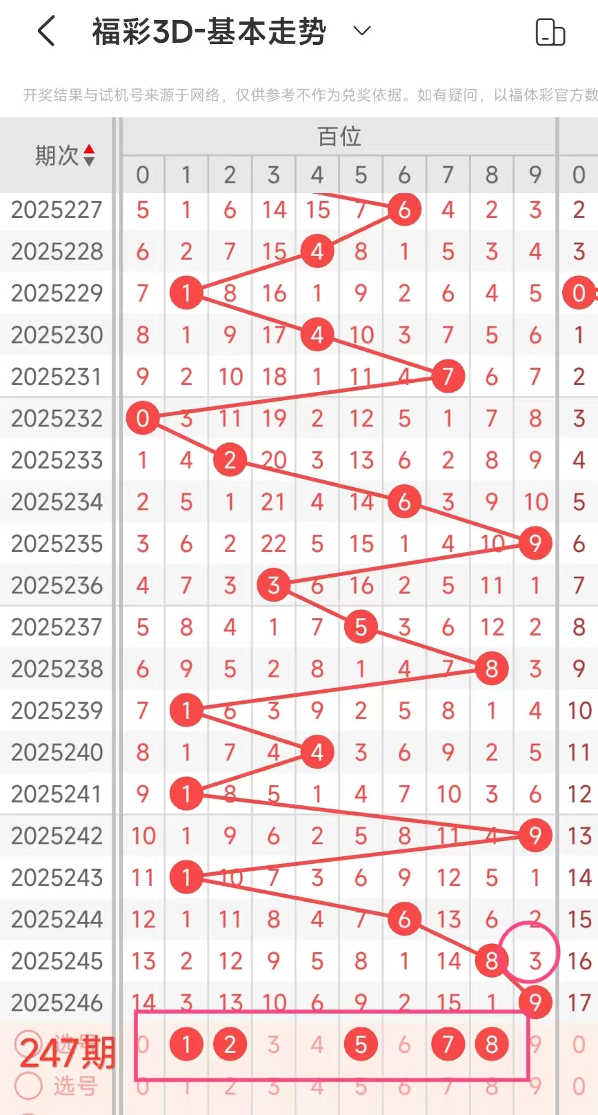 4、通过上述我们得到这期百十个位分析号码:百位0478,十267、个位08